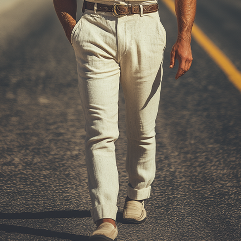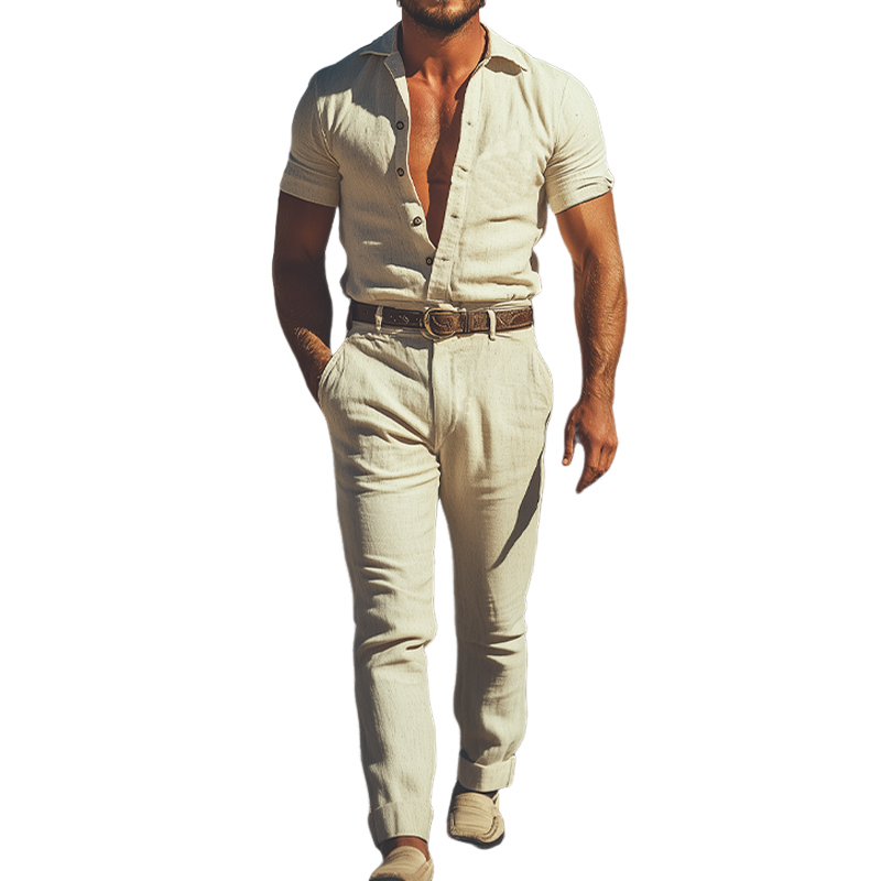 Product Name: Men's Summer Fashion Retro Western Style Cotton and Linen Jumpsuit (Without Belt)