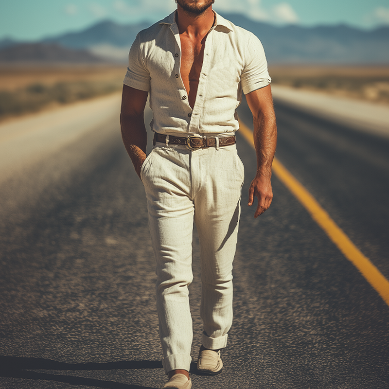 Step into summer with style in the Men's Summer Fashion Retro Western Style Cotton and Linen Jumpsuit. This unique jumpsuit combines the charm of retro western fashion with modern comfort, making it an essential piece for your warm-weather adventures.
