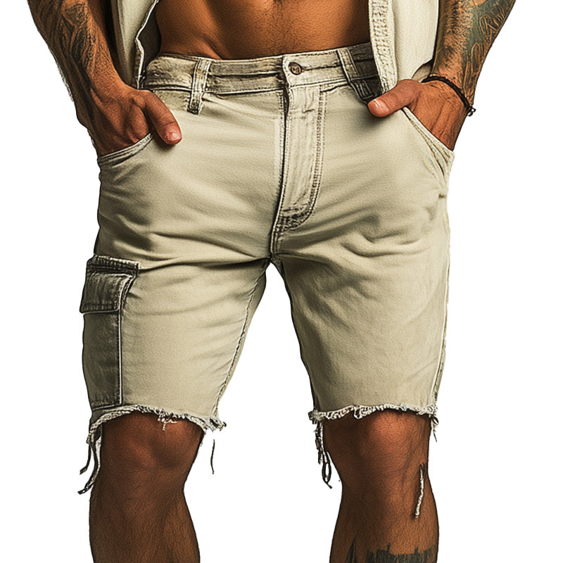 Men's Denim Shorts | Summer Fashion | Slim Fit | Raw Edge | Multiple Pockets | High-Quality Fabric | Versatile Wash | Casual Wear