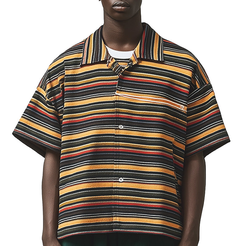 The Men's Summer Fashion Striped Print Loose Short Sleeve Shirt is designed for those who appreciate comfort without compromising on style. This shirt features a modern striped print design, perfect for adding a chic touch to your summer wardrobe. Tailored in a loose fit, it ensures you stay cool and comfortable on warm days.