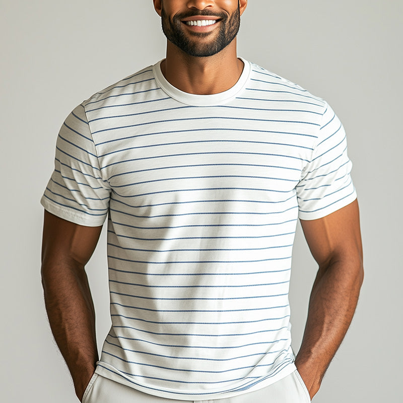 Men's Striped Print T-shirt | Short Sleeve Summer Top | Casual Sports Tee | Fashionable & Breathable Fabric | Versatile Style for Jeans & Shorts
