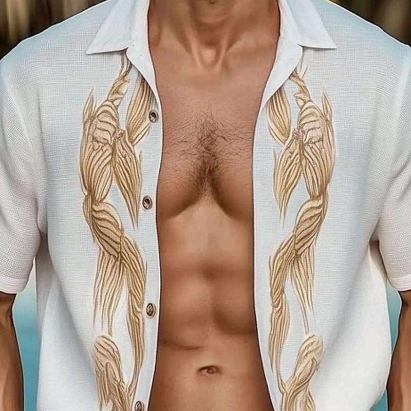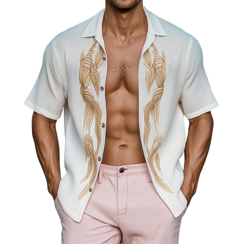 Men's Shirt | Summer Short Sleeve | Gold Embroidery | Loose Fit | Lightweight Fabric | Casual Comfort | Breathable Design | Sizes S-3XL