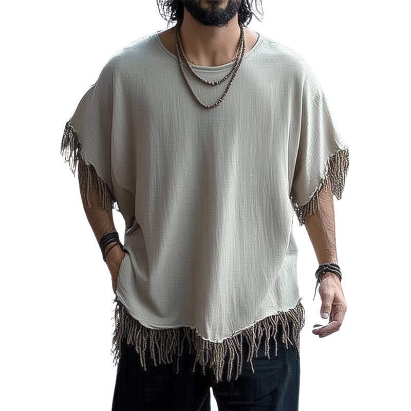 Dive into a world where style meets comfort with the Men's Summer Ice Silk Wrinkled Tassel Loose Casual T-shirt. This innovative piece not only elevates your summer wardrobe but also introduces a touch of artistry and distinctive charm to your everyday attire.