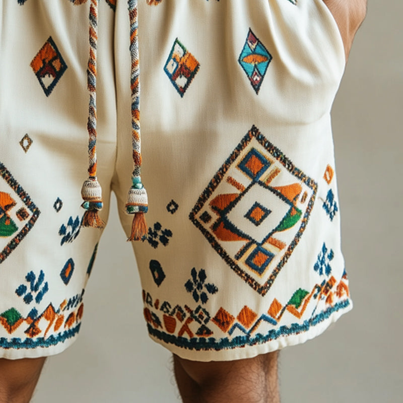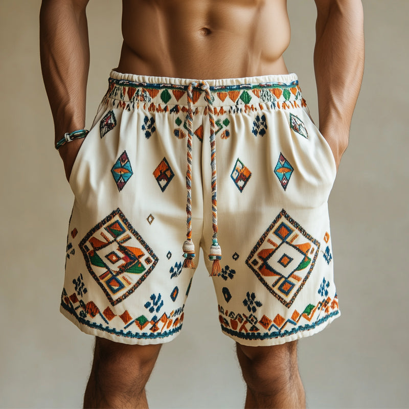 Men's Summer Multicolor Geometric Embroidered Shorts