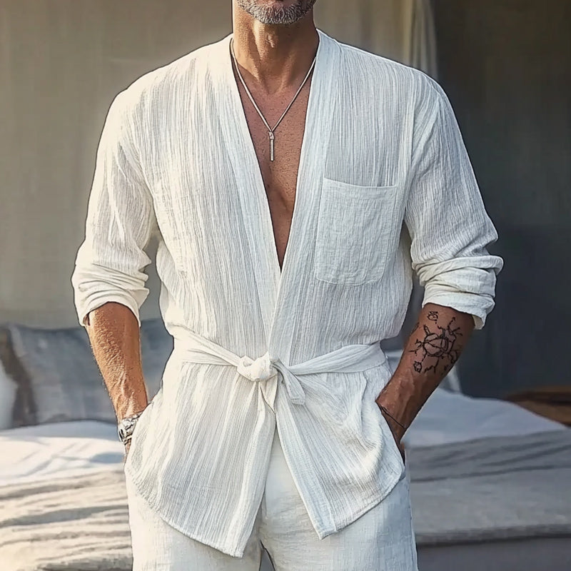 Men's Casual Shirt | Summer Pleated Textured Design | Includes Belt | Versatile Cotton | Long Sleeve | S-3XL | Machine Washable