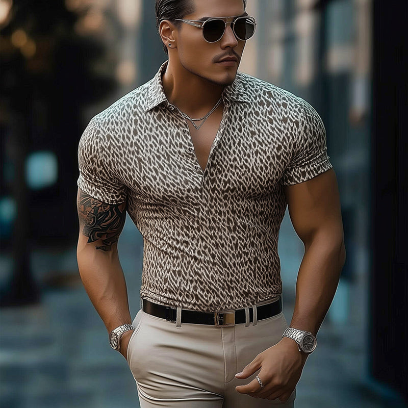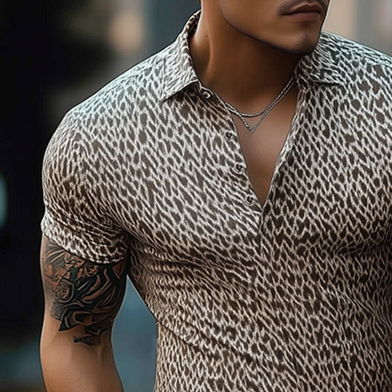 Men's Retro Print Slim Fit Polo Neck T-Shirt | Short Sleeve Summer Top | Vintage Style | Breathable Lightweight Fabric | Fashionable Casual Wear | Sizes S to 3XL | Perfect for Gatherings & Outings