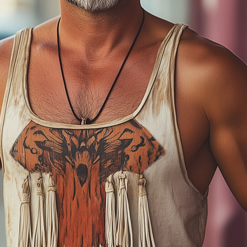Men's Retro Tank Top | Summer Tassel Design | Printed Sleeveless Shirt | Casual Beachwear | MTA2595D7U