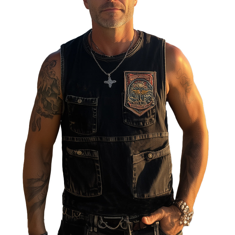 Discover the perfect fusion of vintage appeal and modern style with our Men's Summer Retro Washed Distressed Denim Embroidered Tank Top. Tailored for fashion-forward individuals who appreciate the timelessness of denim, this tank top delivers comfort and style during the warmer months. The retro washed effect combined with distressed detailing provides an unmistakably rugged and worn-in look, while intricate embroidery adds a touch of sophistication and individuality. Whether you're hitting the beach, attending a festival, or enjoying a casual day out, this tank top is your go-to piece for a bold and unique fashion statement.