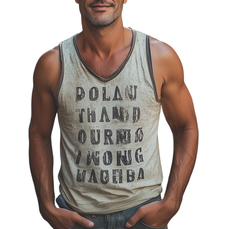 Men's V-neck Tank Top | Retro Letter Print | Summer Fashion | 100% Cotton | Breathable Lightweight Fabric | Casual Beachwear | Regular Fit Sleeveless | Nostalgic Style | Versatile Summer Top | Sizes S-3XL