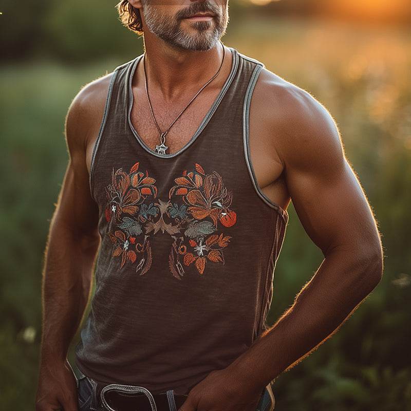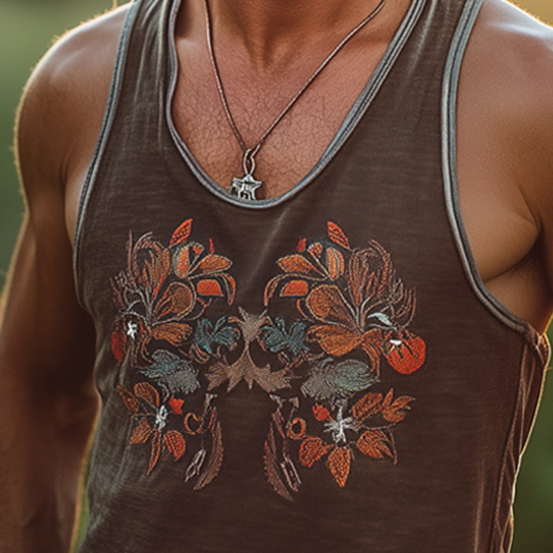 Men's Summer Vintage Embroidered Cotton Tank Top