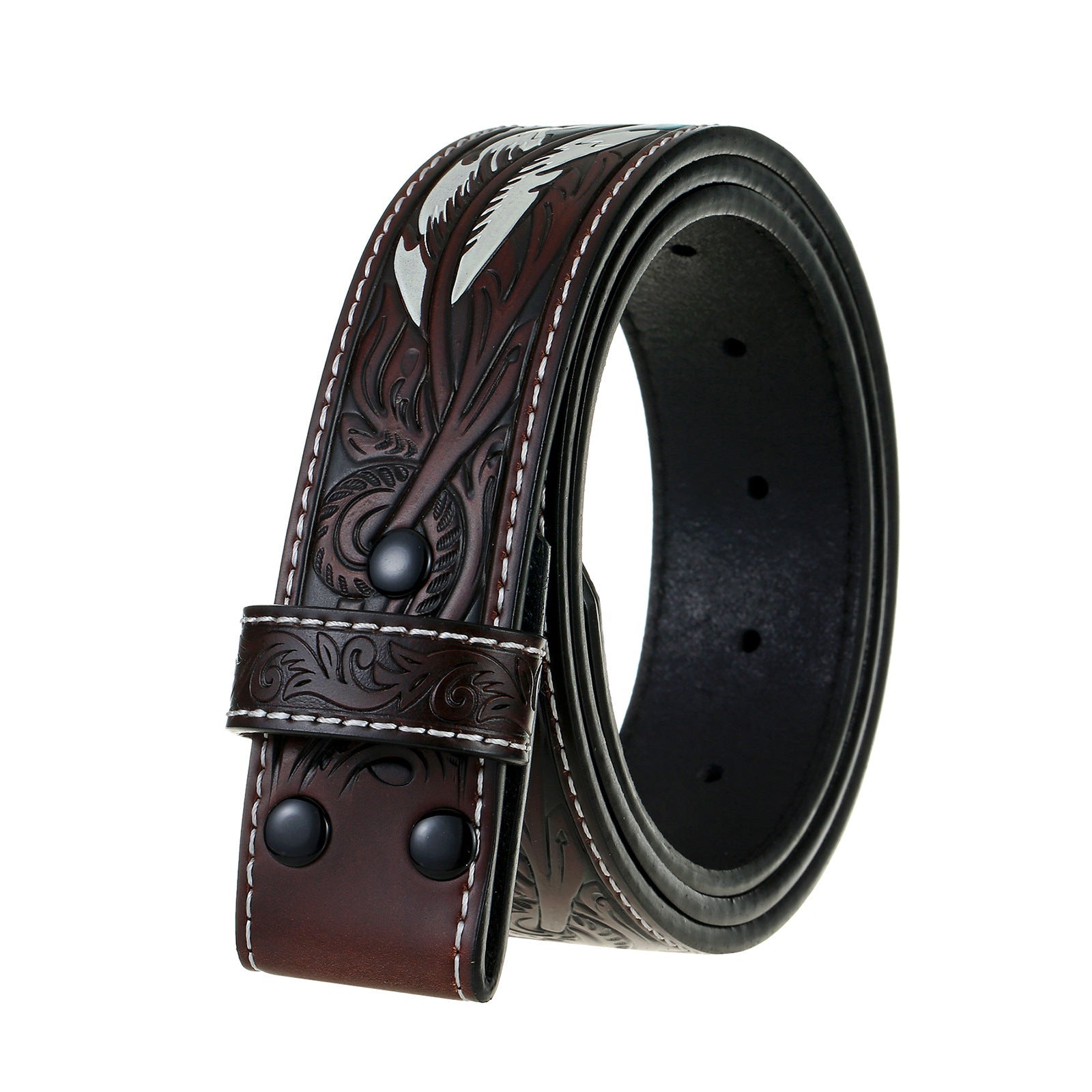 Men's Vintage Genuine Leather Punk Style Embossed Feather Snap Belt