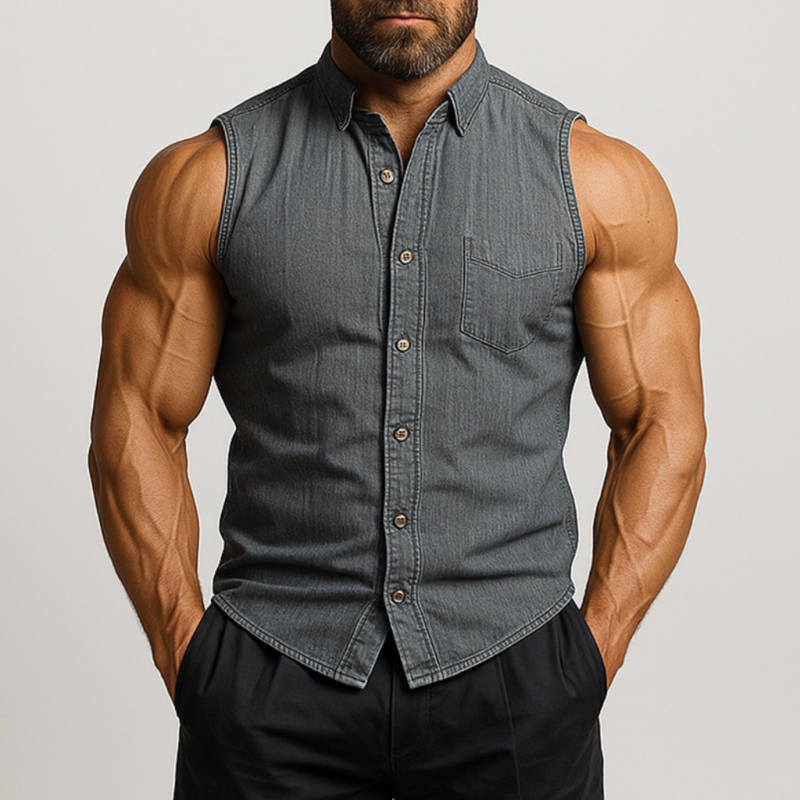 The Men’s Vintage Washed Distressed Lapel Patch Pocket Slim Fit Denim Sleeveless Shirt combines rugged vintage style with a sleek, modern silhouette. Made from durable denim with a carefully crafted washed and distressed finish, this sleeveless shirt exudes an authentic, worn-in vibe. The lapel collar and patch pockets add distinctive detailing, while the slim fit cut contours the body for a contemporary, fashionable look. Ideal for streetwear, casual outings, or layered summer outfits, this sleeveless denim shirt delivers both durability and edgy appeal for a versatile wardrobe staple.