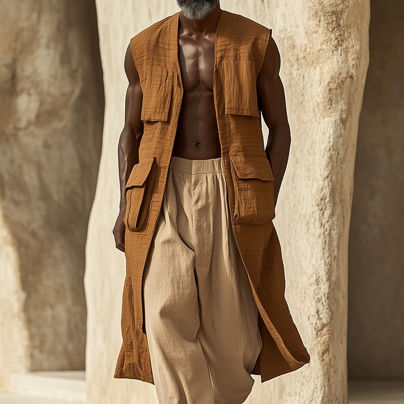 Men's Western Vintage Vest | Long Sleeveless Linen | Premium Fabric & Comfort | Classic Modern Style | Versatile Casual Formal Wear